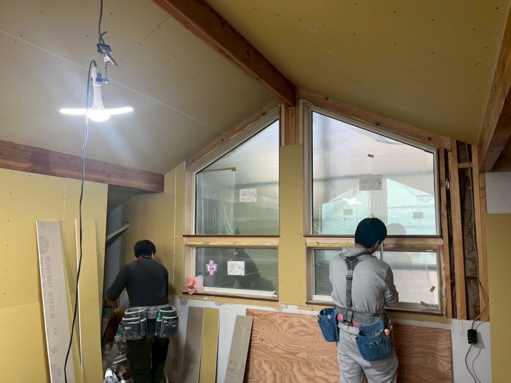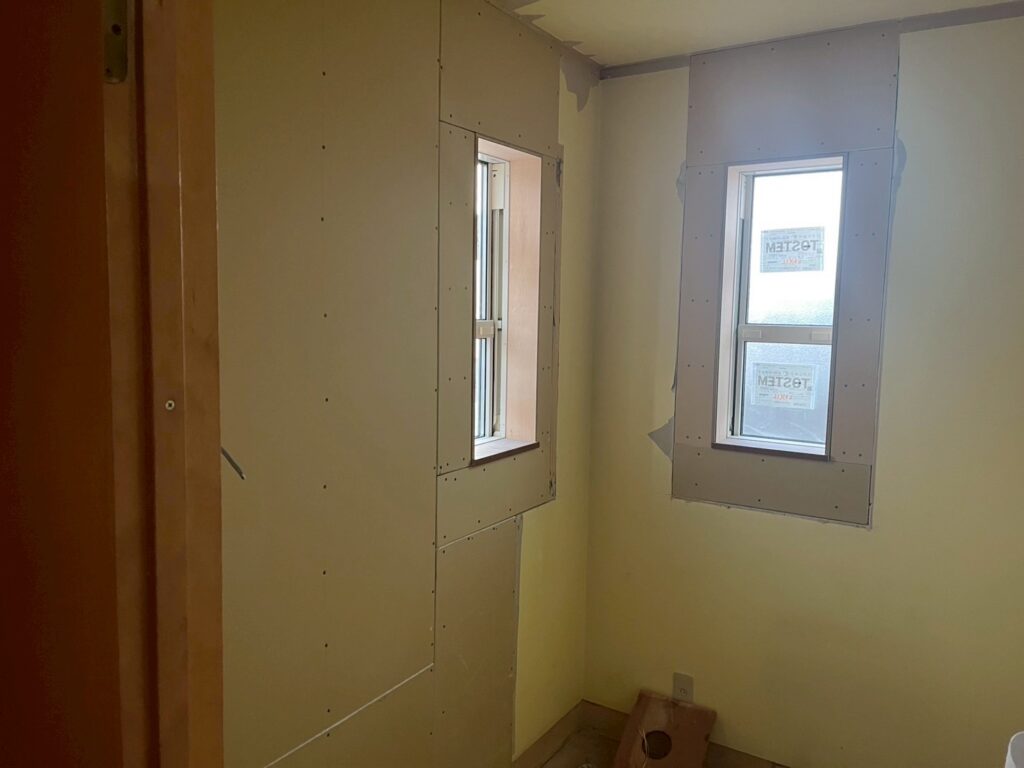 今回は既存ボードのところとのつながりもあるので、普通石膏ボードにて納めます😁🤗
