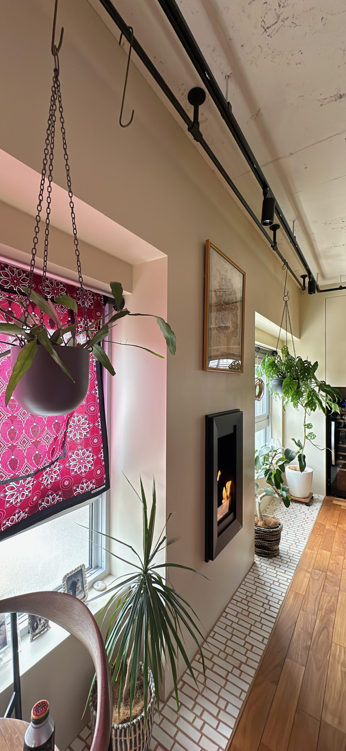 リビング手前にあるトイレも、赤+ボタニカル柄で、シックな雰囲気を出しています。